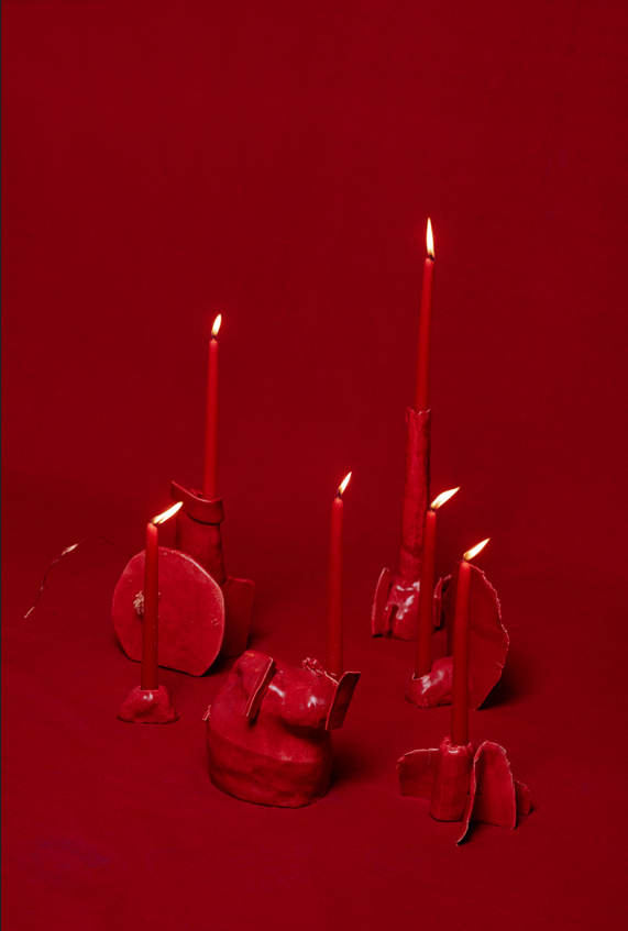 A través de la autoobservación, Adolfo traduce estas ideas en formas gestuales fragmentadas pero expresivas, desvaneciendo la línea entre lo tangible e intangible, la presencia y la vulnerabilidad. El color rojo ocupa un lugar central, simbolizando el nacimiento, la pasión y la intensidad—una fuerza sin concesiones que encarna tanto la vitalidad como la profundidad emocional.